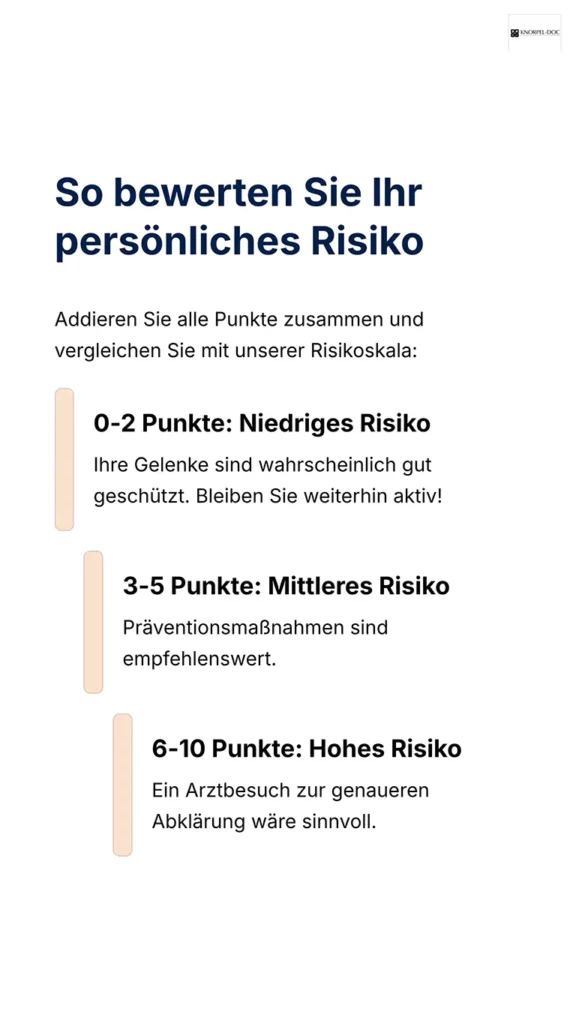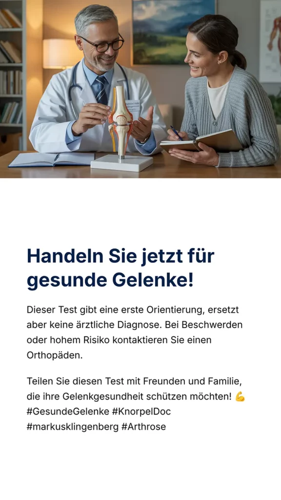 Was Sie davon haben: Ich zeige Ihnen, welche Hinweise auf eine mögliche Gelenkbelastung hindeuten. Wichtig: Dieser Selbsttest ersetzt keine ärztliche Diagnose. Bei starken oder anhaltenden Beschwerden bitte ich Sie, einen Termin zu vereinbaren.